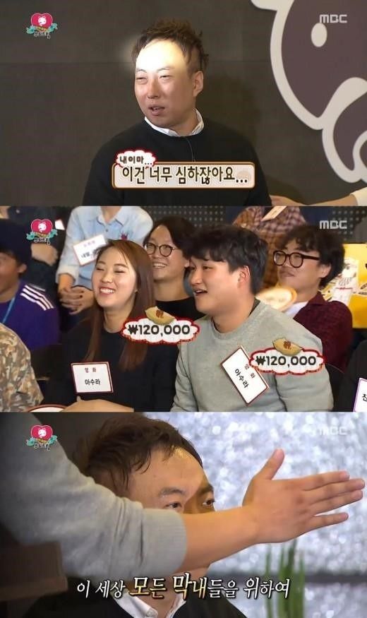 경매특집때 아수라 영화 막내피디들 박명수 이마때리기로 기부도 해서 인연으로 나오는듯ㅋㅋㅋㅋㅋ