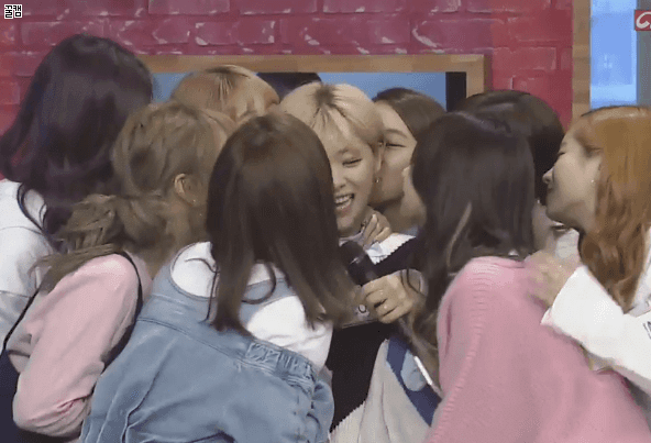 [움짤] 단체로 정연이에게 뽀뽀선물하는 트와이스