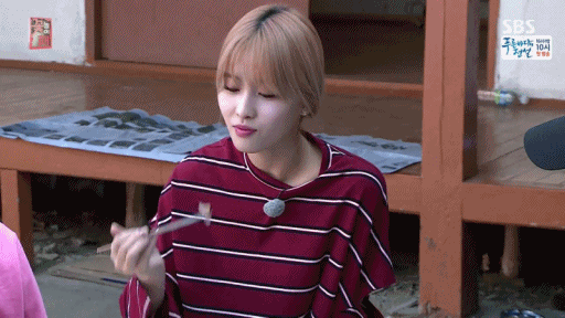[움짤] 꽃놀이패 출연한 트와이스 모모의 회 먹방